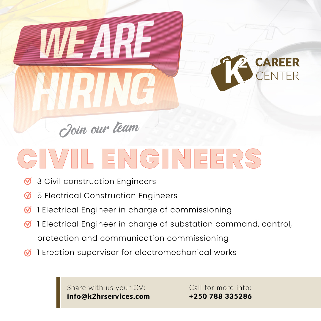 👷🏾‍♂️ 3 Civil construction Engineers: Minimum 7+ years experience in distribution line civil works and having a bachelor’s degree in civil engineering.